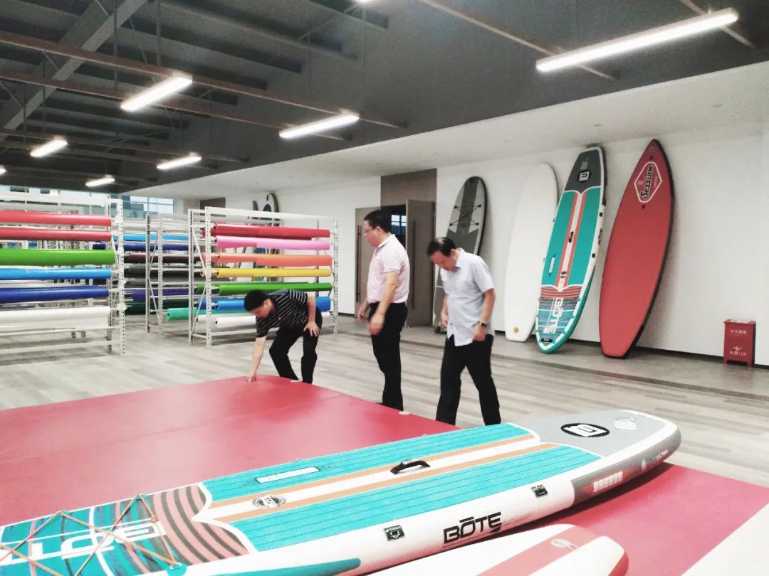在參觀思嘉產(chǎn)品展廳時,領(lǐng)導(dǎo)們看到由思嘉氣密、氣膜、空間布等材料制造的終端產(chǎn)品,細聽產(chǎn)品信息,感受產(chǎn)品質(zhì)量,對思嘉產(chǎn)品表示認可。