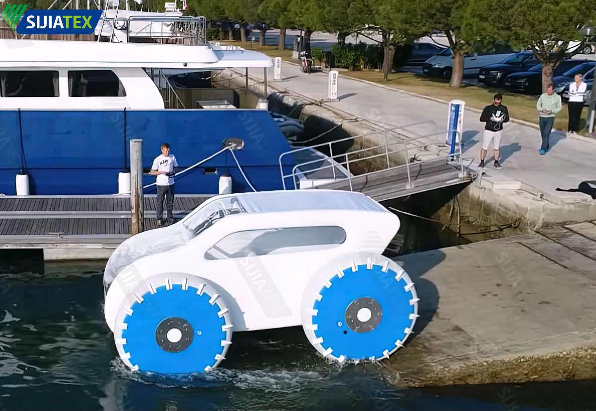 通過(guò)創(chuàng)新研發(fā),思嘉集團(tuán)推出空間布材料、養(yǎng)殖水池材料、充氣艇材料、水上樂園氣密材料,可用于制造水陸兩棲車、太陽(yáng)能擺渡船、充氣艇、水上樂園、水上停機(jī)坪等裝備...這些裝備在世界各地得到廣泛應(yīng)用,為海洋經(jīng)濟(jì)發(fā)展注入新能量。
